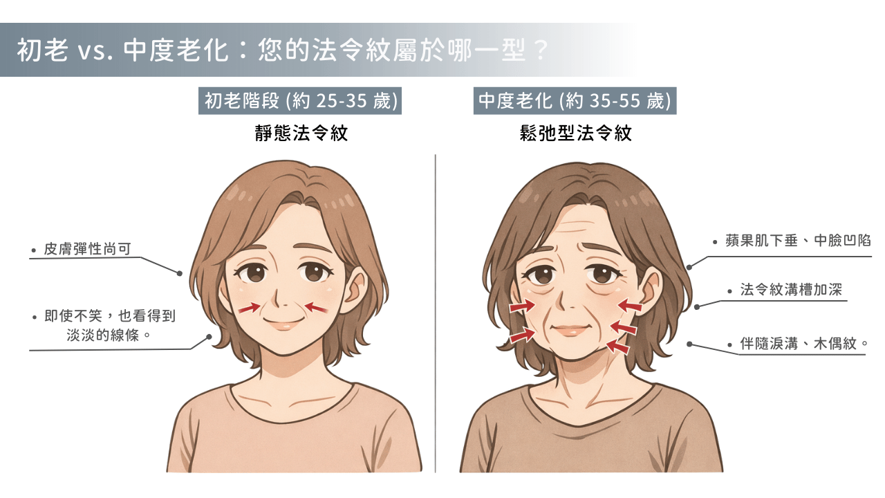 二、初老 vs. 中度老化:您的法令紋屬於哪一型?