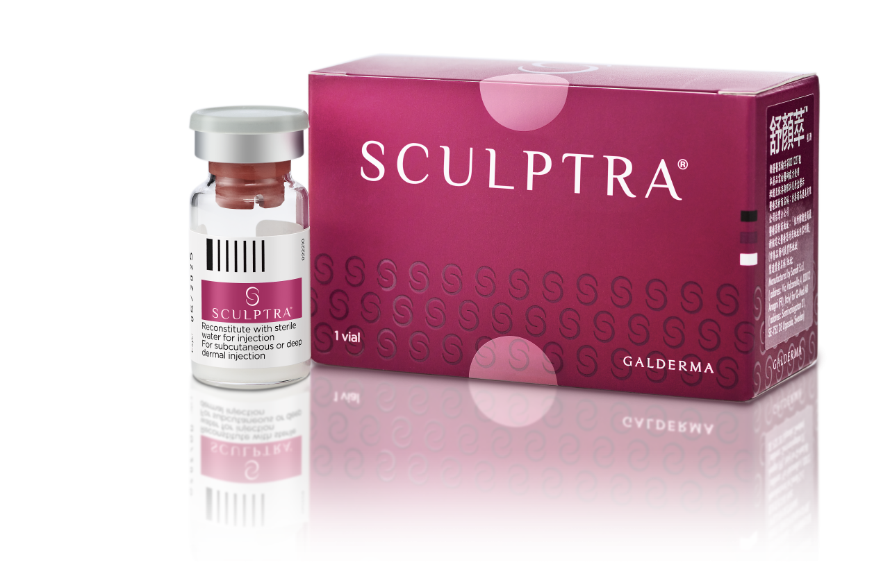 Sculptra舒顏萃產品包裝盒與瓶身特寫圖 - 由Galderma高德美製造